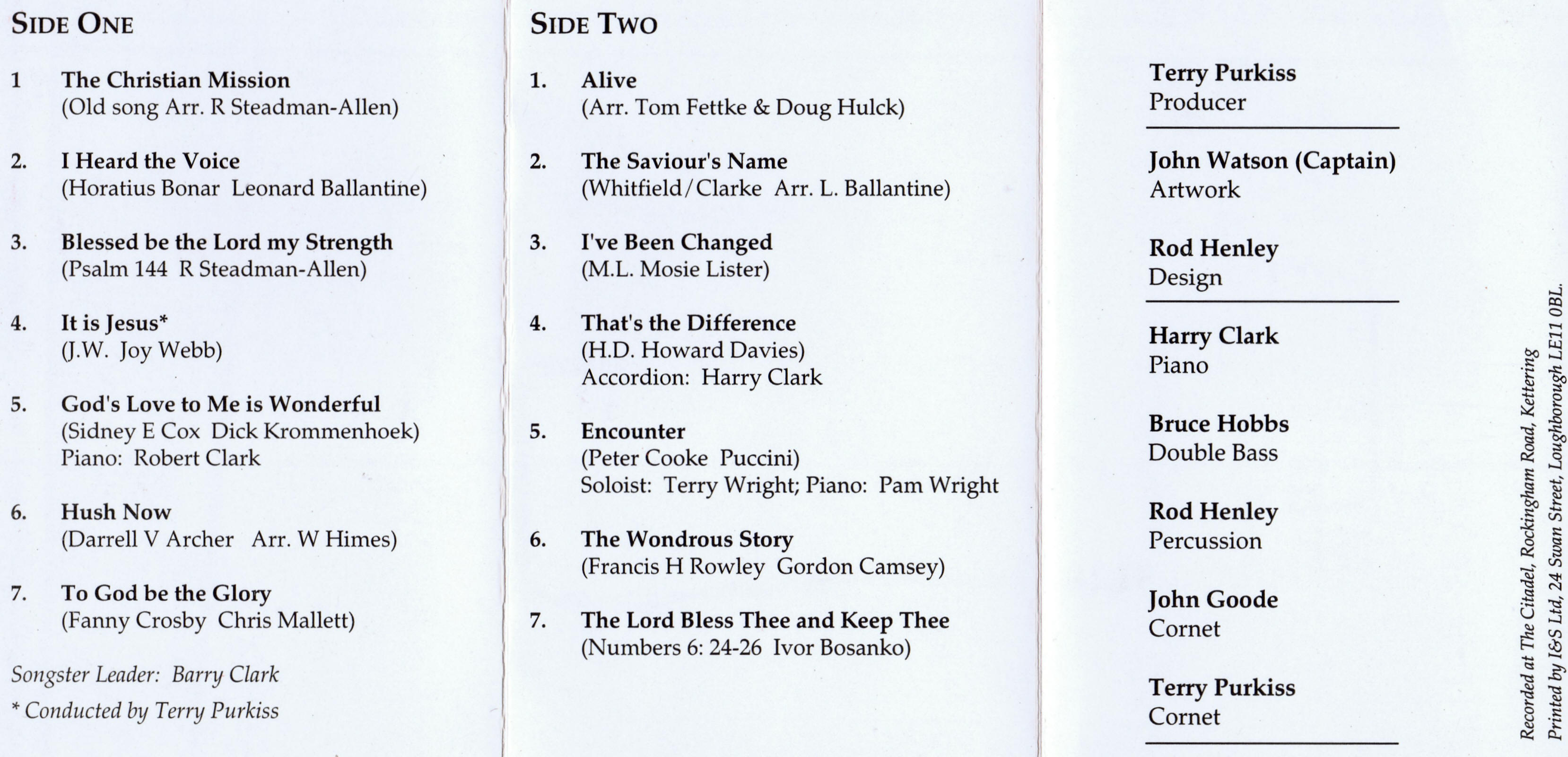 | The Saviour's Name | Kettering Citadel Songsters | Barry Clark | Whitfield/Clark arr. L. Ballantine |