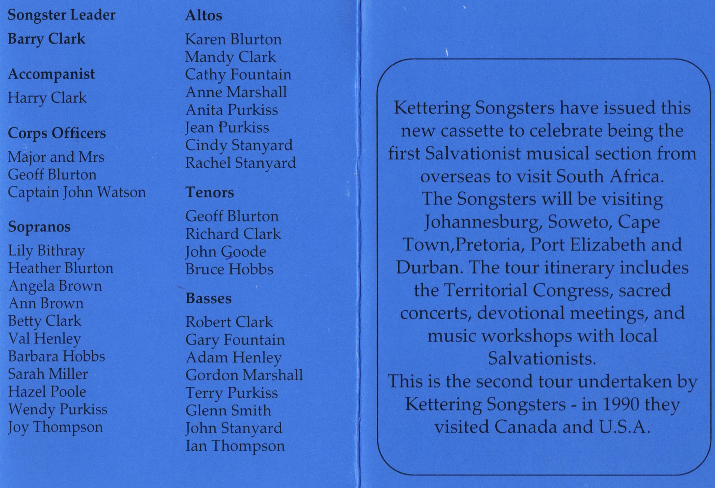 | Joy!, Joy!, Joy! | Kettering Citadel Songsters | Barry Clark | William Perason, John Larsson |