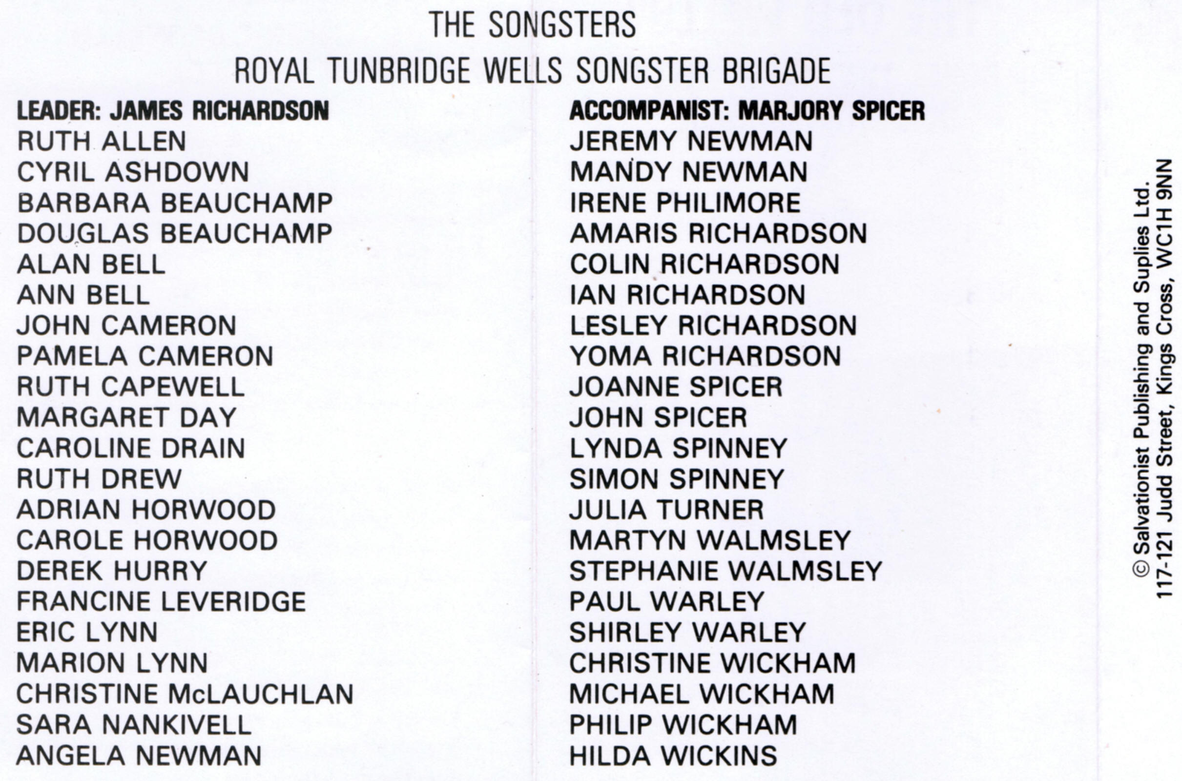Singing Praise Royal Tunbridge Wells Songster Brigade James Richardson Arter/Ayling