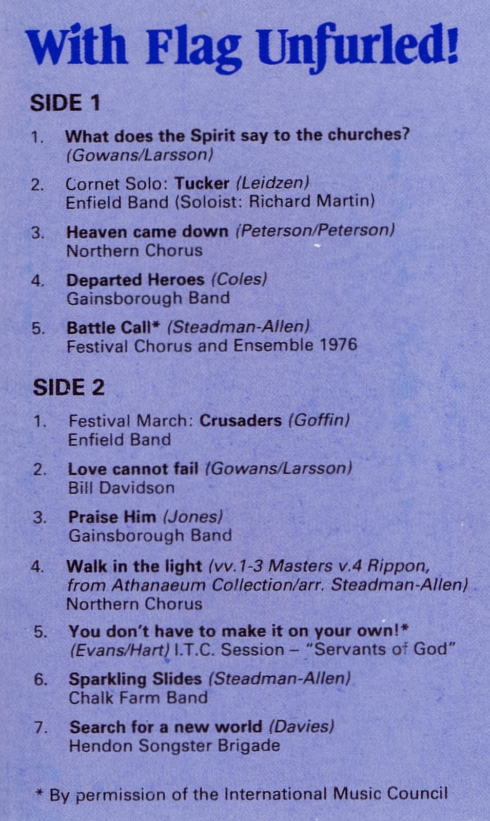| Song - Battle Call | Festival Chorus and Ensemble 1976 | Steadman-Allen | |