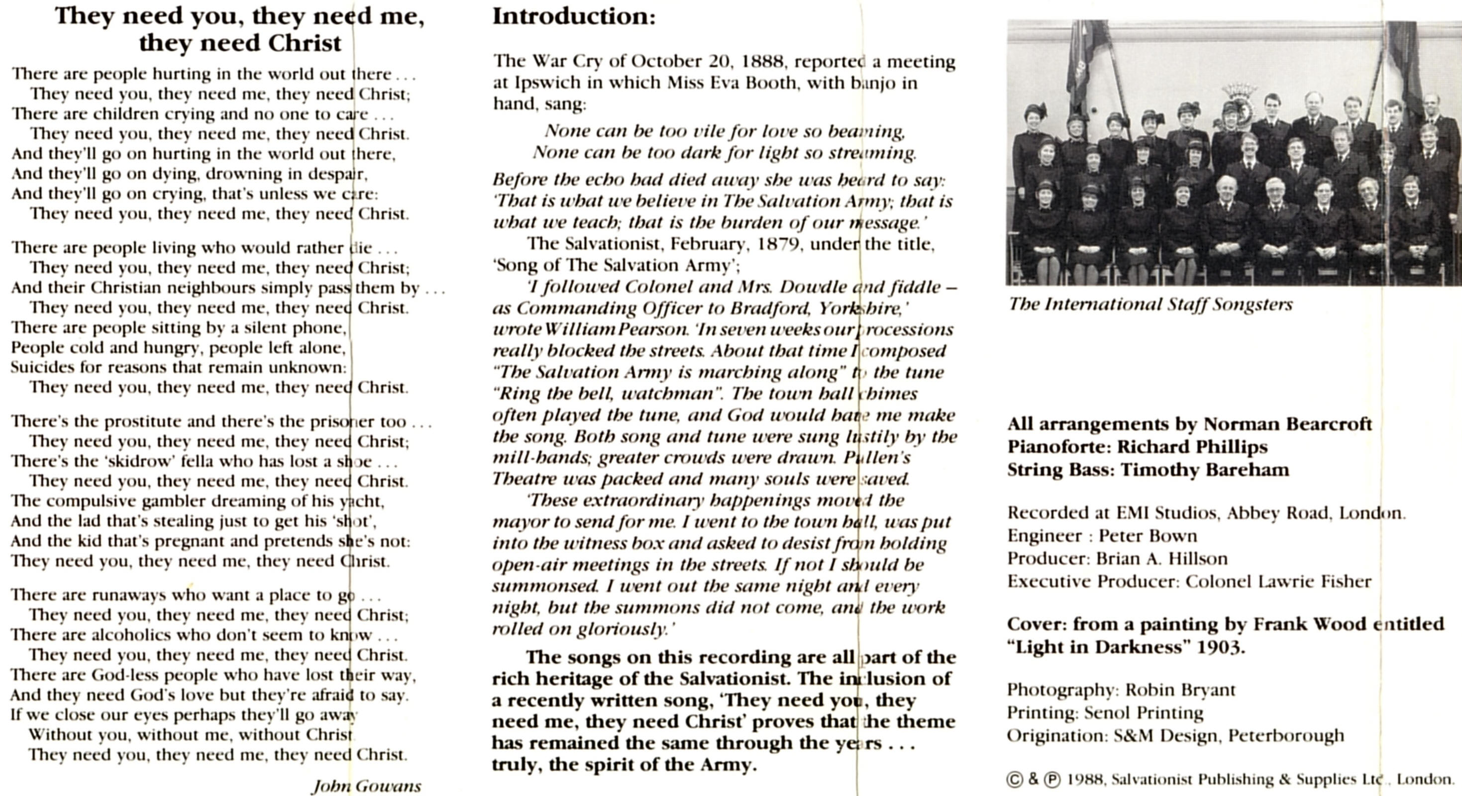 They Need You, They Need Me, They Need Christ International Staff Songsters  Norman Bearcroft Words; John Gowans