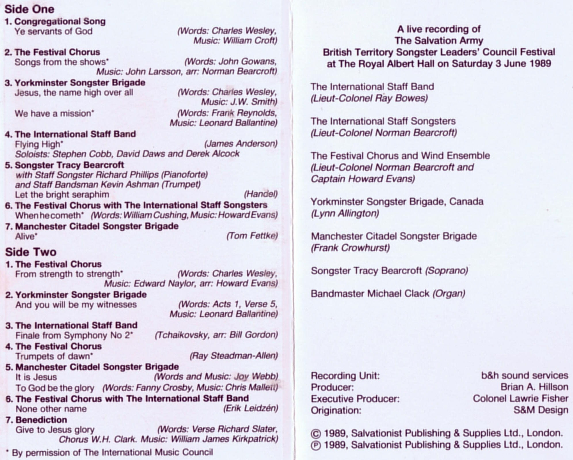 A Tribute to Salvation Army Musicians, Music and Composers