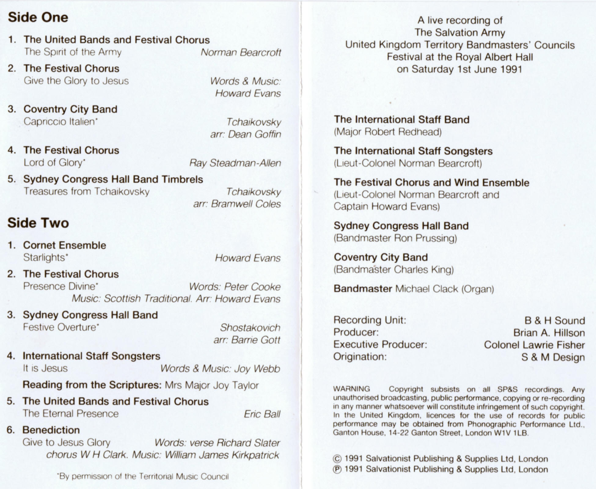 A Tribute to Salvation Army Musicians, Music and Composers