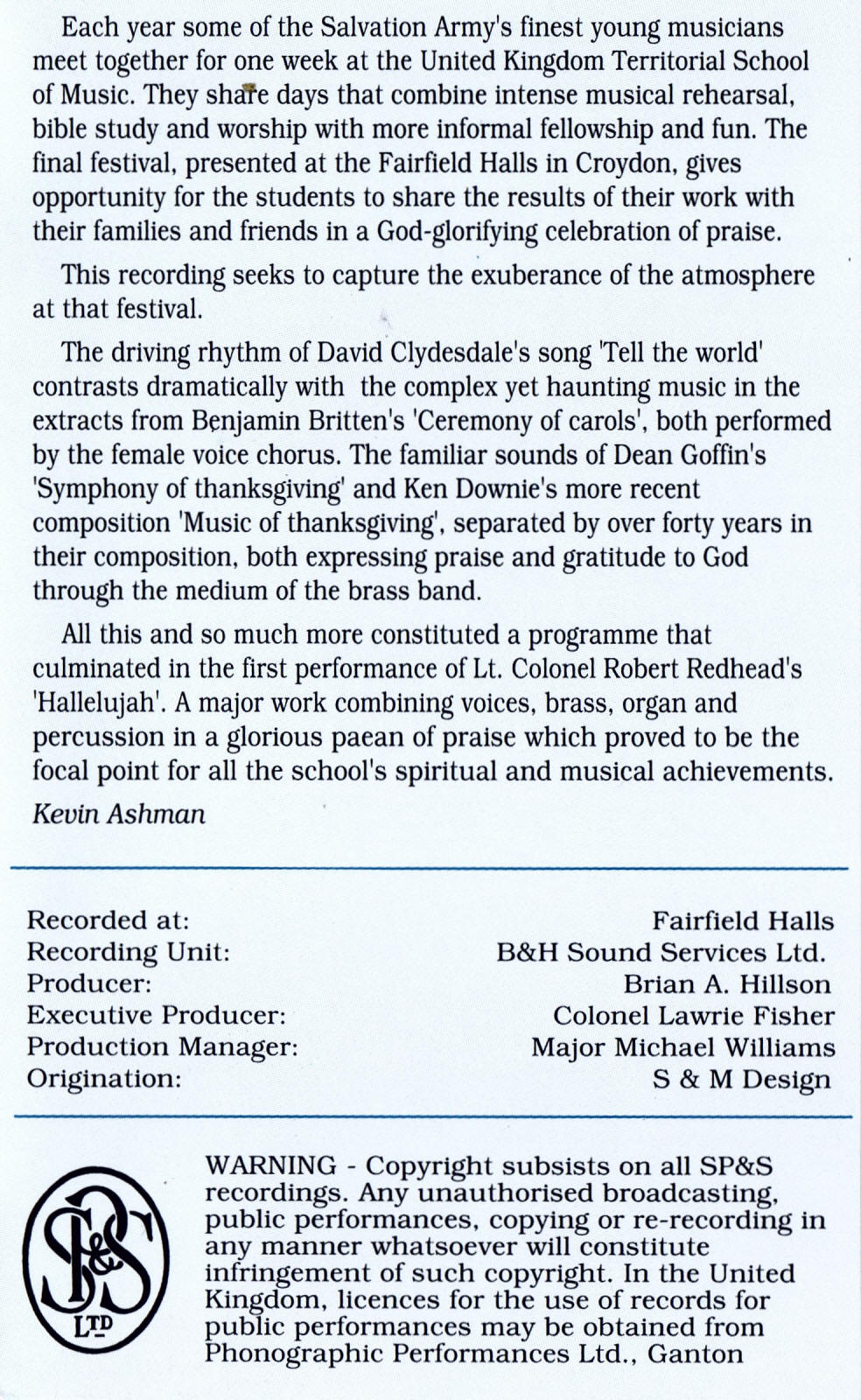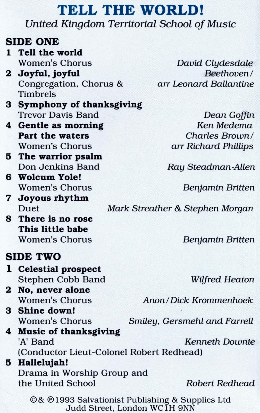 A Tribute to Salvation Army Musicians, Music and Composers