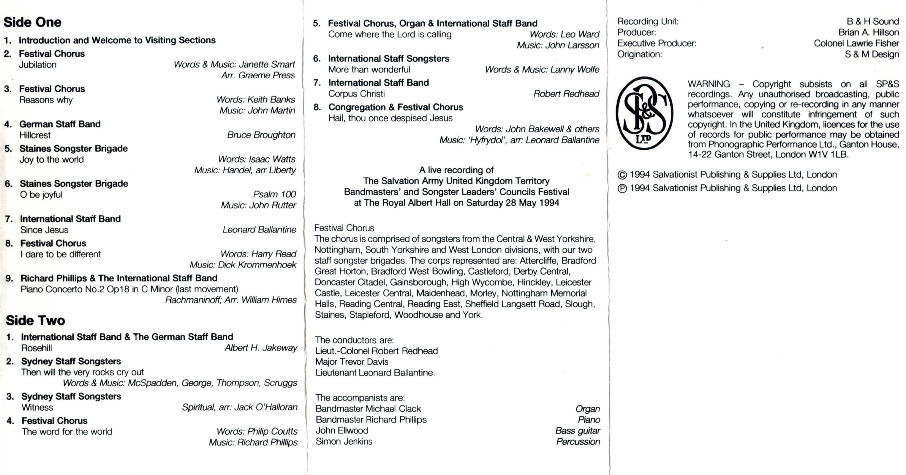 *SPS101 - Bandmasters' & Songster Leaders' Councils Festival
