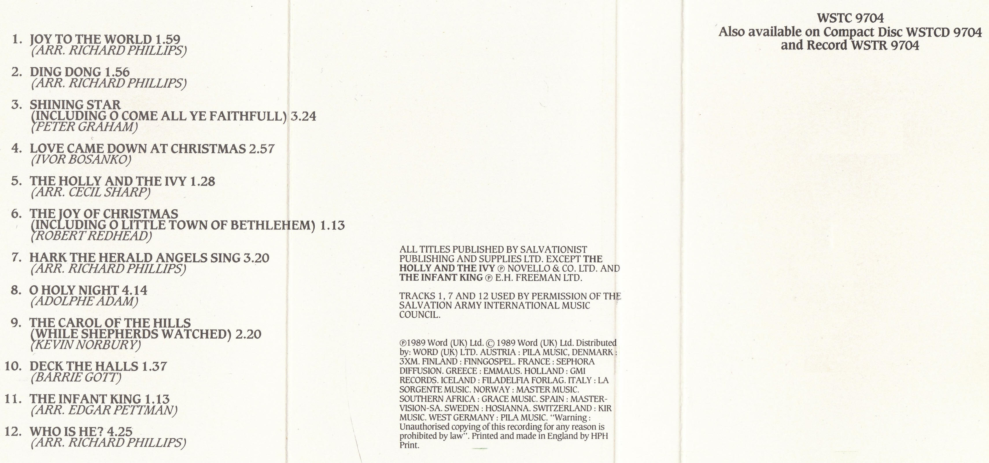 | Joy to the World | Hendon Citadel Band & Songsters | Brian Lawrence & Stephen Cobb | arr. Richard Phillips |